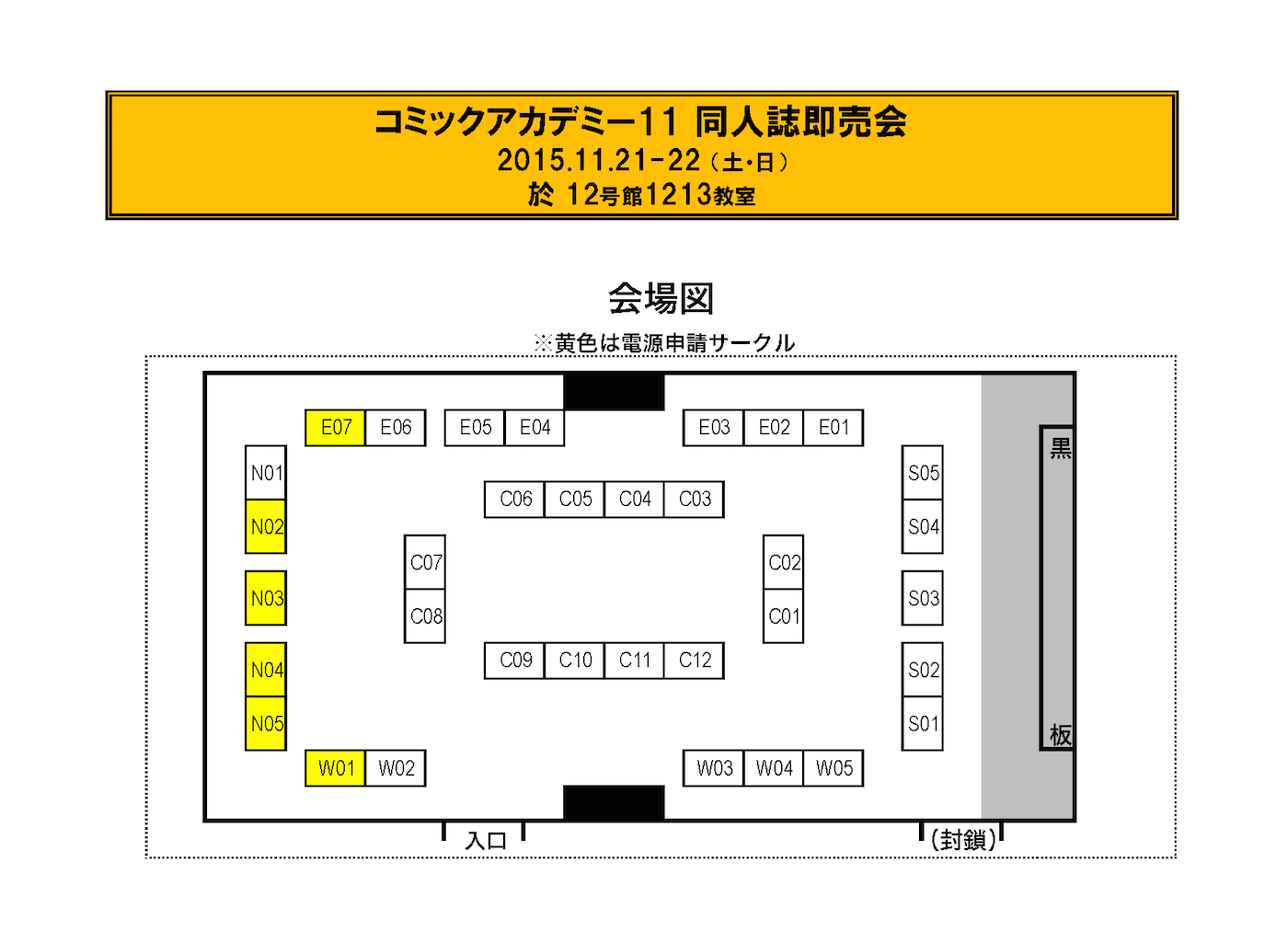 ※以下は昨年秋に開催されたコミアカ11の会場図・サークル一覧です。